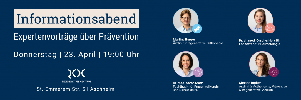 Gesund bleiben, statt erst zu handeln, wenn Beschwerden entstehen – genau darum geht es bei unserem kommenden Informationsabend im ROC Regenerativen Centrum in Aschheim.